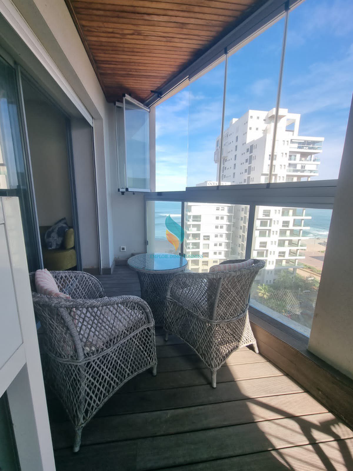 Le studio est agrémenté par une magnifique vue sur mer à travers sa terrasse, il est doté d’une finition moderne et situé en étage élevé d’un immeuble bien entretenu, se composant de :